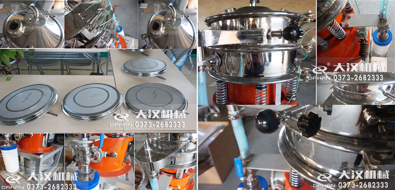 氣體保護(hù)超聲波篩粉機(jī)全稱氣體保護(hù)超聲波振動(dòng)篩粉機(jī),是旋振篩和超聲波篩粉機(jī)的一種衍生產(chǎn)品,將超聲波控制器與旋振篩有機(jī)結(jié)合在一起,在大漢機(jī)械多年的研究生產(chǎn)的DH系列旋振篩的基礎(chǔ)上,在篩網(wǎng)上面疊加一個(gè)高頻率低振幅的超聲振動(dòng)波,超微細(xì)粉體接受巨大的超聲加速度,使篩面上的物料始終保持懸浮狀態(tài),從而抑制粘附、摩擦、平降、楔入等堵網(wǎng)因素,從而解決了強(qiáng)吸附性、易團(tuán)聚、高靜電、高精細(xì)、高密度、輕比重等篩分難題,使超微細(xì)粉篩分不再成為難事,特別適合高品質(zhì)、精細(xì)粉體的用戶使用。
