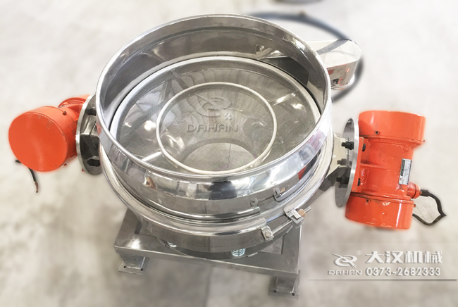 粉末直排篩利用振動(dòng)電機(jī)利用其軸上下端的兩組偏心塊(不平衡偏心塊)的相位角以及兩臺(tái)電機(jī)之間的交叉角度將振動(dòng)電機(jī)的旋轉(zhuǎn)運(yùn)動(dòng)變?yōu)樗健⒋怪?、傾斜以及離心作用的多作用力重疊,再將這種作用力傳遞給篩面,從而達(dá)到篩分的目的。改變上下偏心塊的相位角和重量,可以改變激振力的大小和物料的運(yùn)動(dòng)軌跡。